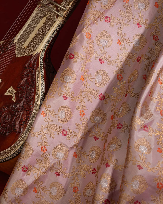Luxury Pink Banarasi Silk Saree with Heavy Zari Weaving & Designer Fringe Border