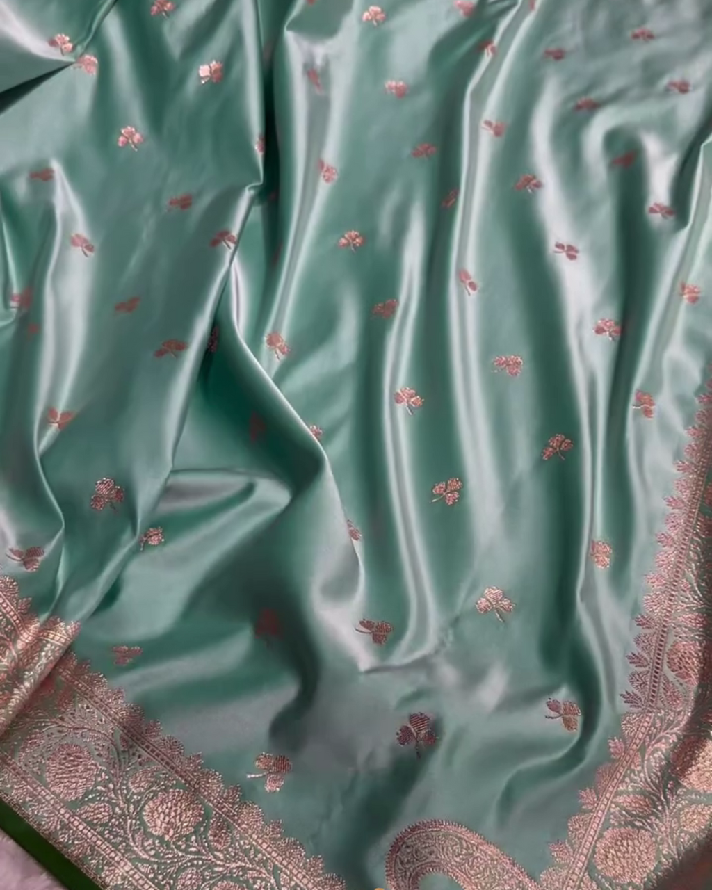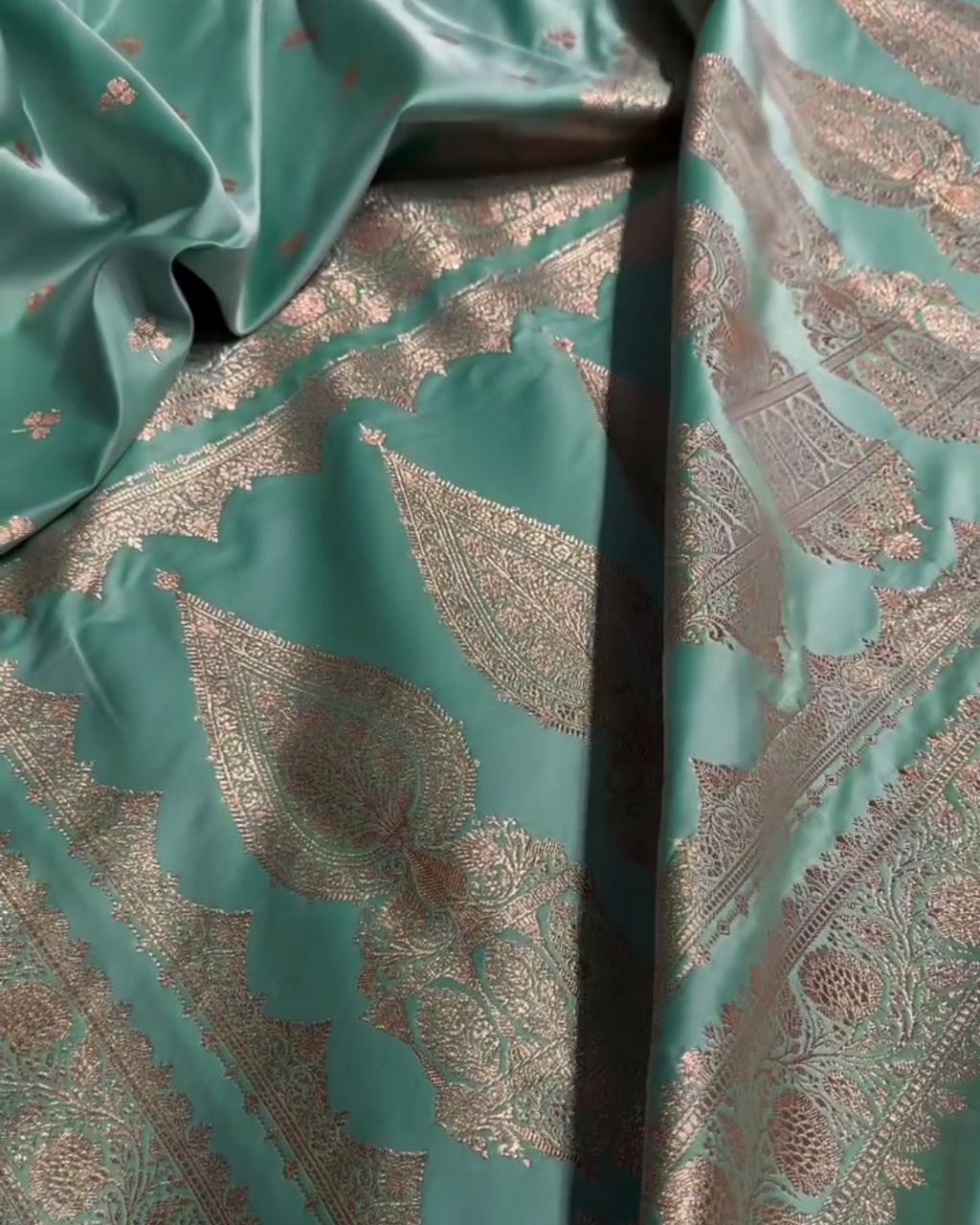 Urmila – Green Banarasi Semi-Katan Silk Saree with Golden Zari Butta and Broad Border